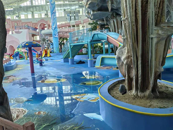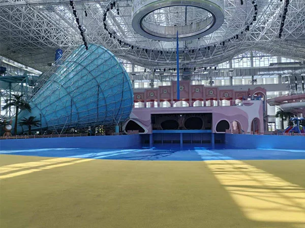 실내 워터파크에는 대형 파도풀, 유수풀, 거대 깔때기 미끄럼틀, 무지개 미끄럼틀, 나비 미끄럼틀 등 스릴 넘치는 어트랙션과 미니 워터 미끄럼틀, 소형 무지개 미끄럼틀 등 어린이들이 즐길 수 있는 시설도 갖춰져 있다. 또한 실내외에 33개의 다양한 테마의 온천수영장과 인피니티 풀, 스파풀이 마련되어 있습니다.